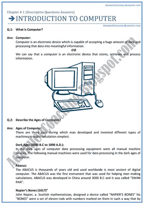 Read Online INTRODUCTION TO COMPUTERS QUESTIONS AND ANSWERS PDF Epub